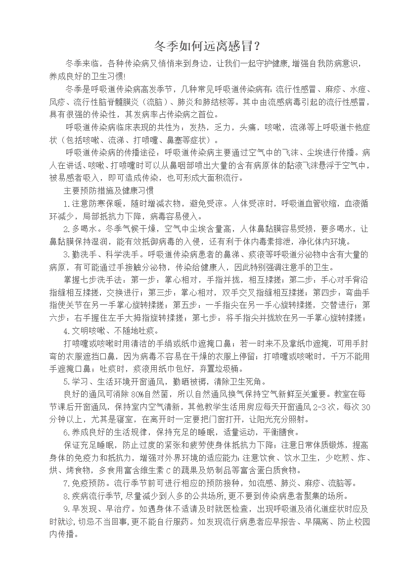 下一篇冬季常见传染病及相关预防知识